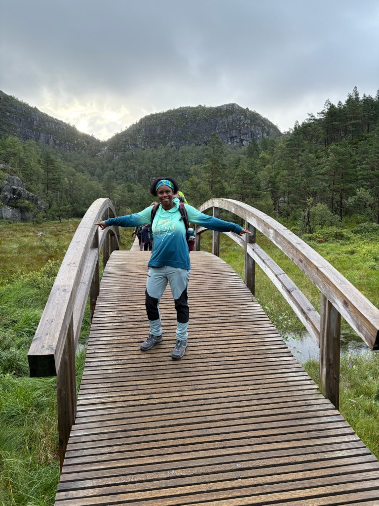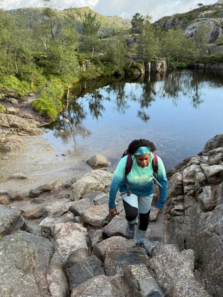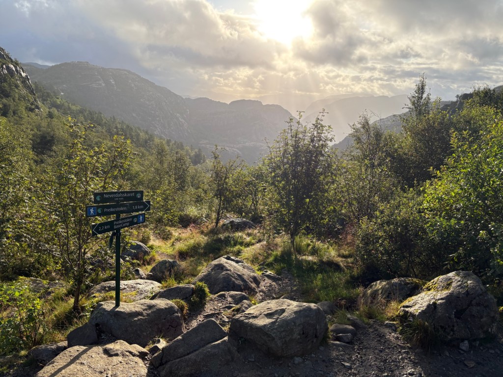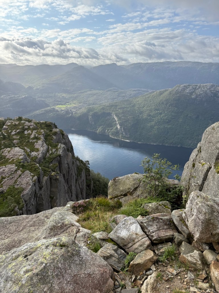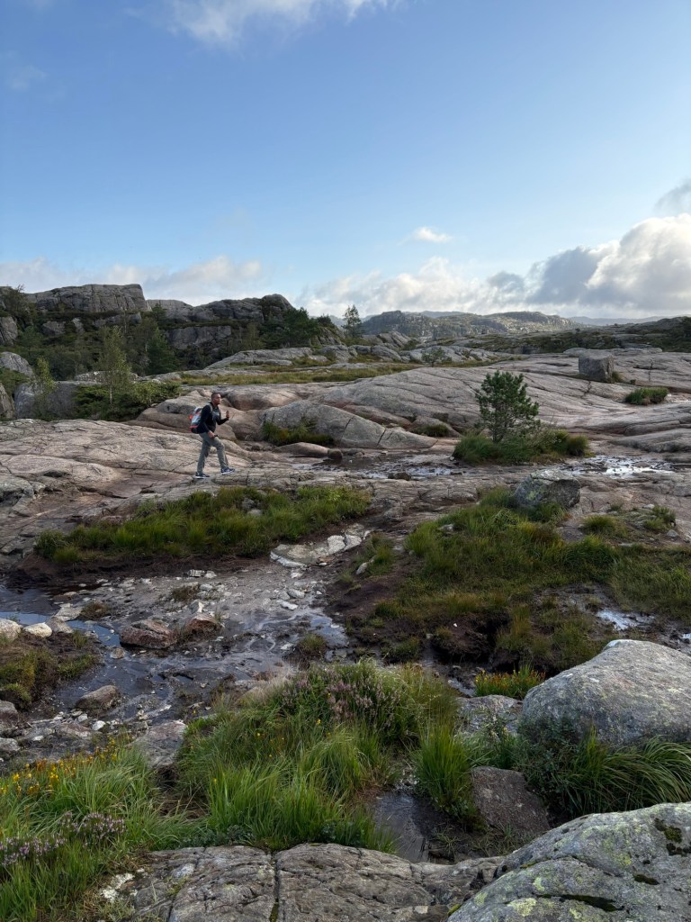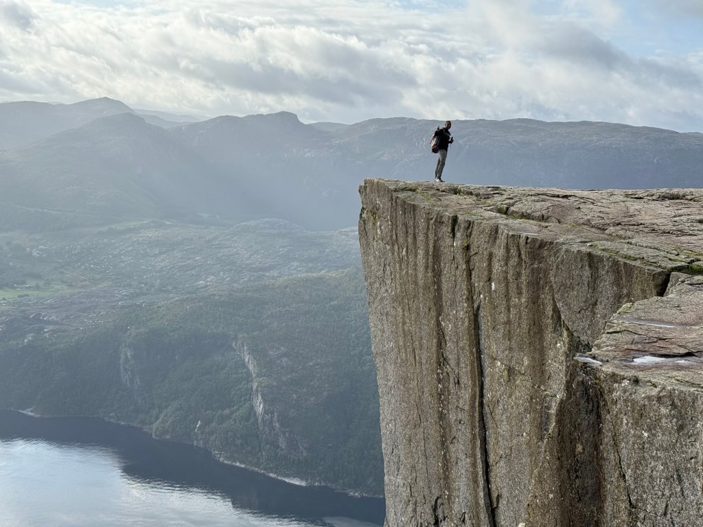 Le sentier traverse forêts, passerelles de bois et zones rocheuses, avant de déboucher sur la célèbre falaise dominant le Lysefjord à plus de 600 m de hauteur. Le panorama est spectaculaire, et le vide impressionnant.