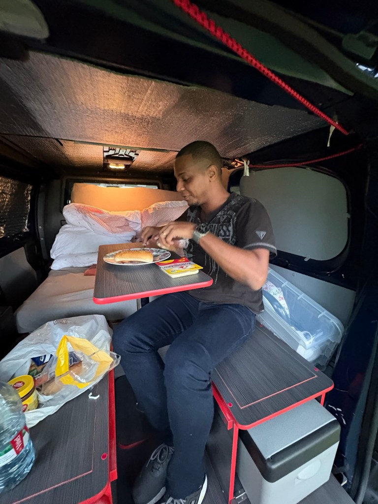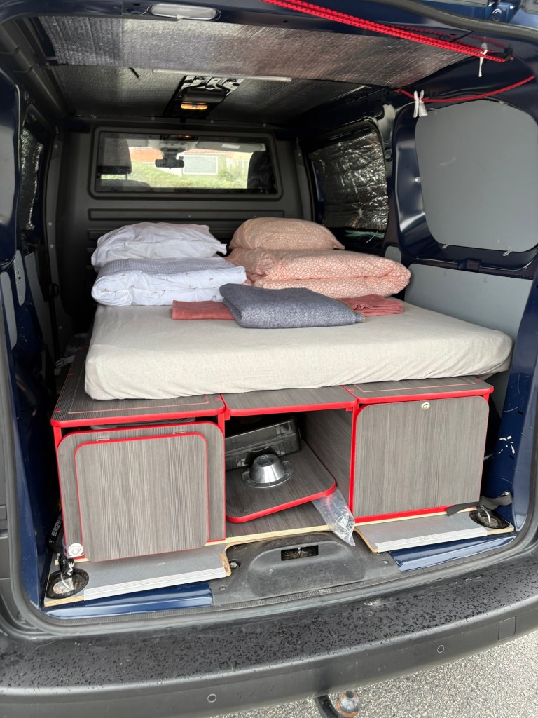Après cette courte traversée, nous prenons possession de notre maison roulante : un van électrique équipé pour plusieurs jours d’autonomie.