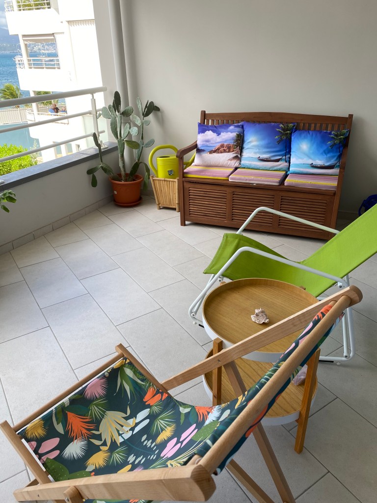 - 1 très belle terrasse permettant de manger et se relaxer tout en bénéficiant d’une vue panoramique sur la mer et la baie de Fort-de-France