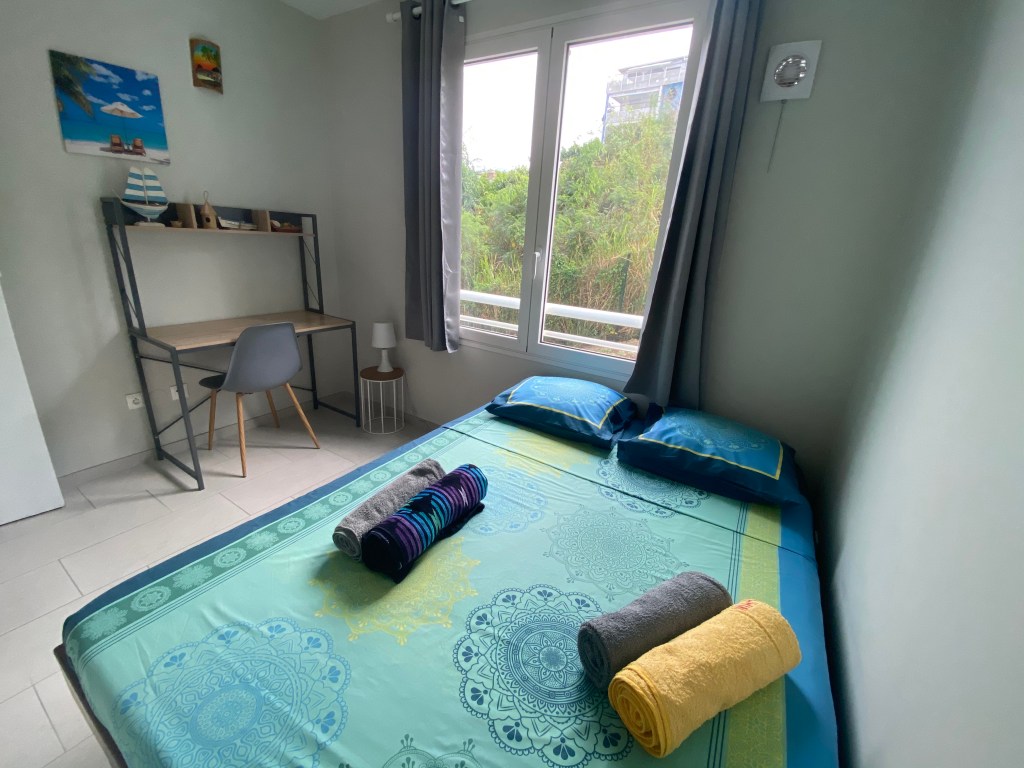 Le logement est situé aux Trois-Ilets, dans le quartier touristique de l’Anse-Mitan. Il est placé en face de la plage accessible en traversant la rue. Cette petite plage permet de se baigner dans une eau turquoise, translucide avec les poissons.